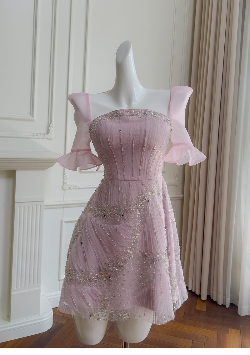 Classy A Line Square Pink Sequin Grad Dress Inspo Short Mini Formal 8th Grade Homecoming Dresses Middle School Hoco Court Dress Graduation Dress Cocktail Dress 16th Birthday Outfits DH1917