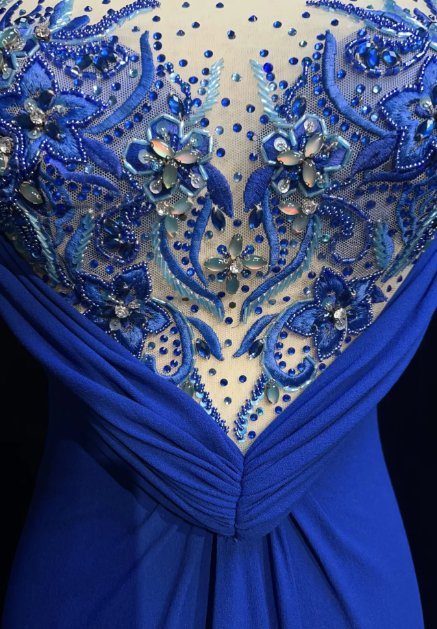Glam Blue Sheath Long Evening Dresses Chiffon Short Sleeves Mother of Bride Dresses DP04402